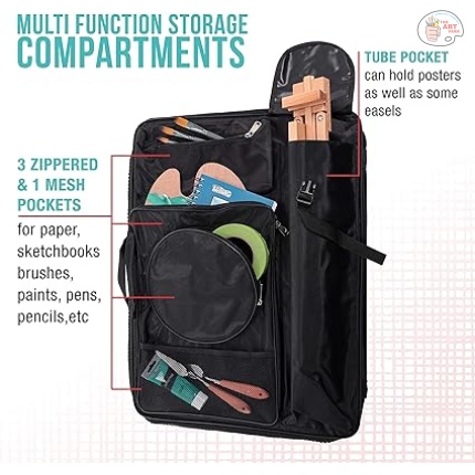 Art Canvas Bag, Large Art Portfolio Case with Zipper Design Shoulder Strap & Tote, Artist Backpack for Storage Artwork Sketch, Drawing, Canvas, Photography, Poster, Art Bag for Kid Student Teacher