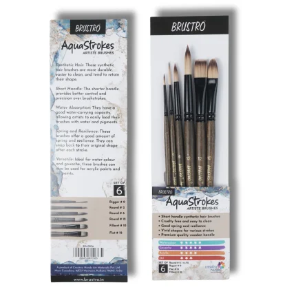 Brustro AquaStrokes Artist Brushes for Watercolour Gouache and Acrylics, Brush Set of 6