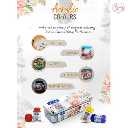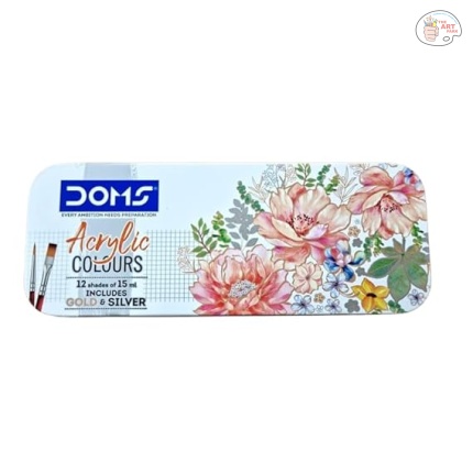 DOMS ACRYLIC COLOURS 12 SHD 15ML Includes Gold & Silver With 2 Brushes Included in the Box