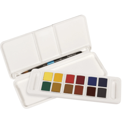 Daler Rowney Aquafine Watercolour Travel Set with 1 Brush(12 Half Pans)