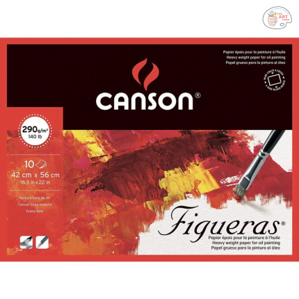 Canson Figueras paper - Canvas Grain 290 GSM 42 x 56 cm or 16.5 x 22'' Block - 10 Sheets is a high quality, resistant paper which has been specially designed for oil painting. Canson Figueras featuring a high-performance barrier which absorbs bonding agents, water and oil evenly, while simultaneously guaranteeing superb resistance by the surface paint layer. The paper is uncoated, with a natural texture similar to canvas. It is also perfectly suitable for greasy pastel and acrylic, with substantial impasto effects.