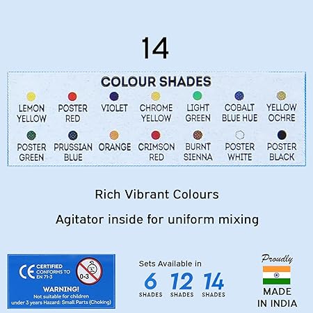 DOMS 14 Shades Poster Colours | Rich & Vibrant Colors | Free Agigator & Brush Inside For Uniform Mixing | Non-Toxic & Safe For Childrens