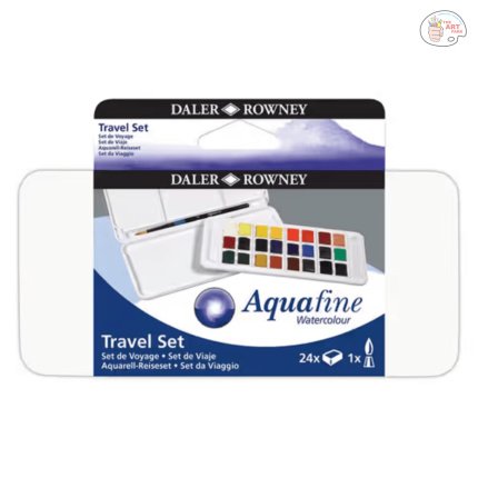 Daler-Rowney Aquafine Watercolour Travel Tin with 1 Brush & 2 Palettes(18 Half Pans)