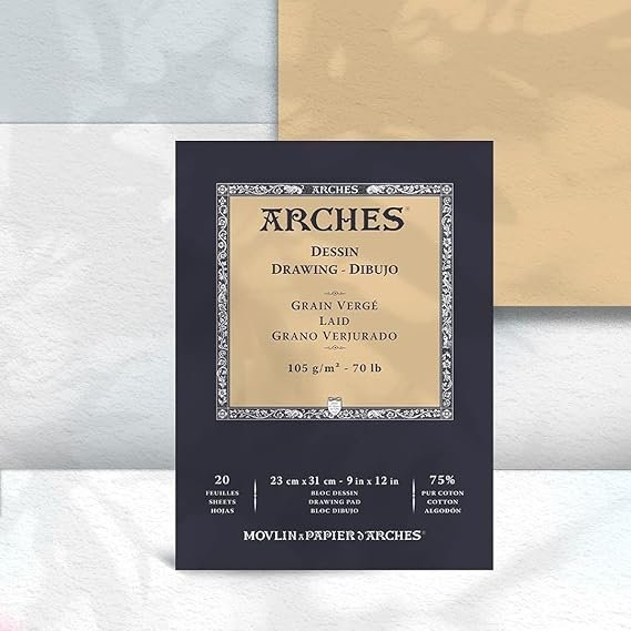 ARCHES INGRES Drawing 105 GSM Laid White 23 x 31 cm Paper Pad, 20 Sheets