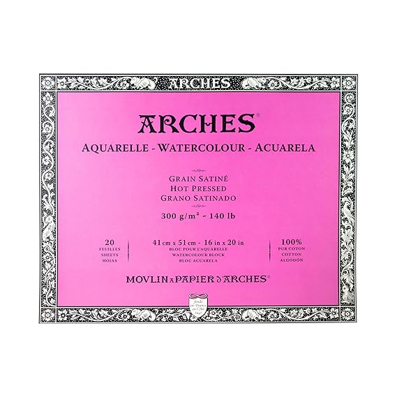 Arches Watercolour Paper Blocks | Hot Pressed Natural White | for Watercolor, Acrylic Painting, Gouache and Poster Color Painting | 300 GSM, 41 x 51 cm- 20 Sheets