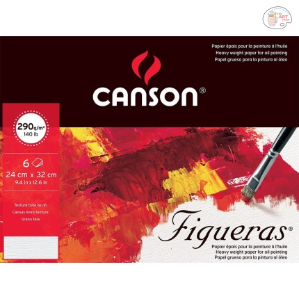 Canson Figueras paper - Canvas Grain 290 GSM 24 x 33 cm or 9.4 x 13'' Pad - 10 Sheets is a high quality, resistant paper which has been specially designed for oil painting. Canson Figueras featuring a high-performance barrier which absorbs bonding agents, water and oil evenly, while simultaneously guaranteeing superb resistance by the surface paint layer. The paper is uncoated, with a natural texture similar to canvas. It is also perfectly suitable for greasy pastel and acrylic, with substantial impasto effects.