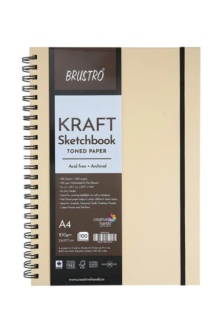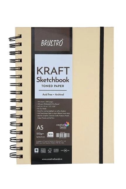 This Brustro Kraft Paper Sketchbook, Wiro Bound, is suitable for use with a variety of art mediums including pens and