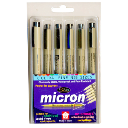 SAKURA PIGMA MICRON FINELINER XSDK-6 SET OF 6 DIFFERENT SIZES POINTS