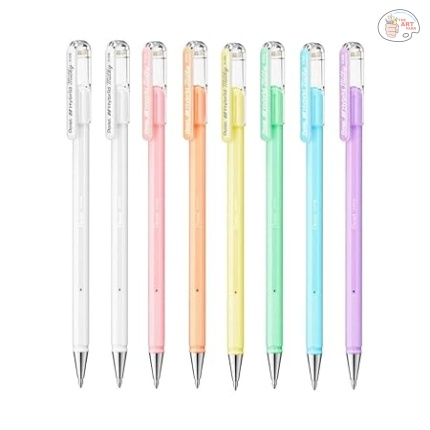 Pentel Hybrid Milky 0.8 MM Roller Gel Pen | Acid-Free | Hand Paint Design & Mandala Art Highlighting | Set of 8 (K108)