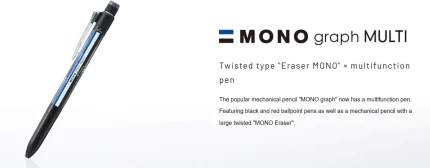 [Features] Multi-functional ballpoint pen with mono eraser [Mechanism] Rotating type [Two-color ballpoint pen] Black/red/Ball diameter 0.5mm [Mechanical pen] Core diameter