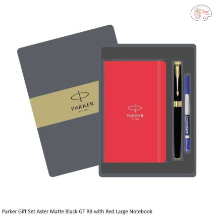 parker aster Matte black gold trim roller ball pen with free RED LARGE notebook