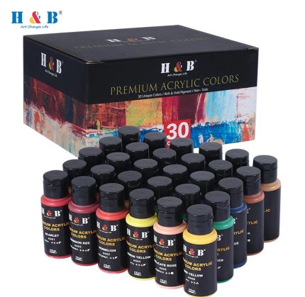 H&B Acrylic Paint Set comes with 30 colors acrylic paint in 60ml/2oz bottles, providing the most commonly used colors to