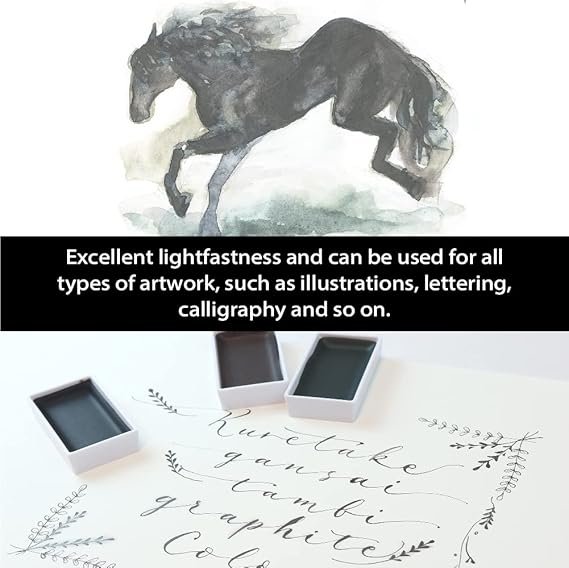 - [GANSAI TAMBI GRAPHITE Colors Set] Deep, tranquil Gansai Tambi colors with a matte texture and finish specific to graphite. Polishing the surface of Graphite Gansai (once dry) reveals a metallic luster.