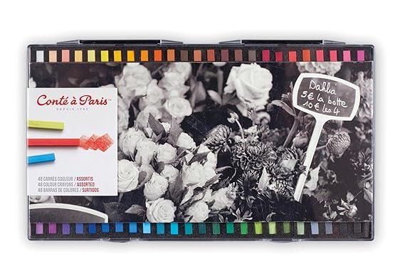 CONTE A PARIS Colour Carres Crayons – 48 Assorted Colours – Plastic box